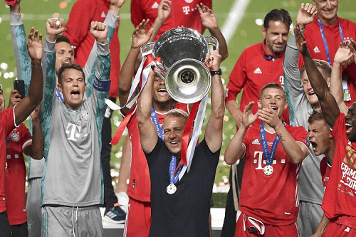 弗里克带队拿到了德甲、德国杯、欧冠、欧超杯、德超杯和世俱杯六项赛事的冠军,成为史上第二支六冠王球队。但本赛季拜仁在欧冠止步4强。